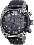 Diesel Men’s Overflow Stainless steel case, Leather strap, Black dial, Quartz movement, Scratch resistant mineral, Water resistant up to 10 ATM – 100 meters – 330 feet