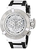 Product DescriptionA sporty flurry of functionality, the Invicta Men’s 0924 Anatomic Subaqua Collection Chronograph Watch is a rugged chronograph that will take you there and back again, whether your destination lies at the finish line or in the depths of the ocean. This chunky watch kicks off with a round 50mm white plastic case with a stainless steel case back, unidirectional stainless steel bezel with three white markers and finally a textured screw-down crown with a protective clasp and two pushers. These elements surround a textured and transparent white dial, which is protected by a flame-fusion crystal and features luminous silver-toned index hour markers and luminous silver-toned hands powered by precise Swiss quartz movement. The dial also features a tachymeter scale on the inner bezel, three chronograph sub-dials offering 60-second, 30-minute and 1/10th-of-a-second displays, and a date display window at the 4 ‘o clock position. A black rubber band with textured white accents straps this watch to the wrist, while a reliable buckle clasp ensures its secure placement. A fashionable bit of functionality with a remarkably clean color palette, this Invicta timepiece looks amazing on the wrist.Product DescriptionStainless steel case with a black plastic strap. Unidirectional stainless steel bezel. White dial with luminous silver-tone hands and index hour markers. Minute markers. Tachymeter around the outer rim. Date scale around and inner ring. Dial Type: Analog. Luminiscent hands and markers. Date display at the 4 o’clock position. Chronograph – three sub-dials displaying: 1/10 second, 60 second and 30 minute. Quartz movement. Scratch resistant flame fusion crystal. Screw down crown. Solid case back. Case diameter: 50 mm. Case thickness: 18 mm. Band width: 29 mm. Tang clasp. Water resistant at 200 meters / 660 feet. Functions: chronograph, date, hour, minute, second. Sport watch style. Invicta Subaqua Chronograph Mens Watch 0924.See all Product Description