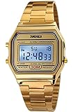 PASOY Men"s Digital Gold Stainless Steel Watch Backlit Multifunction Stopwatch Waterproof Sport Watches