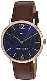 - This Tommy Hilfigier Timepiece 40MM 2H RG Case Navy Dial Dark Brown Leather Strap