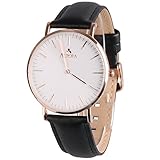 Simple, elegant and bold, the AURORA Women’s Quartz Analog Watch makes it a classic and trend-setting timepiece great for everyday wear. The watch is constructed with a stainless steel case polished with top-level rose gold color and a comfortable black leather bracelet with an adjustable buckle clasp. A durable mineral window protects the white dial face, which cleanly features rose gold-tone hour indexes and rose gold-tone minute markers, and complementary watch hands. It provides both decoration and practicality to women in any occasions.