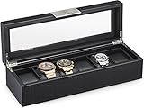 *6 Large Compartments – Each cushion holds a small or large watch neatly in place. There is lots of space between the lid and cushions to accommodate watches of all size.